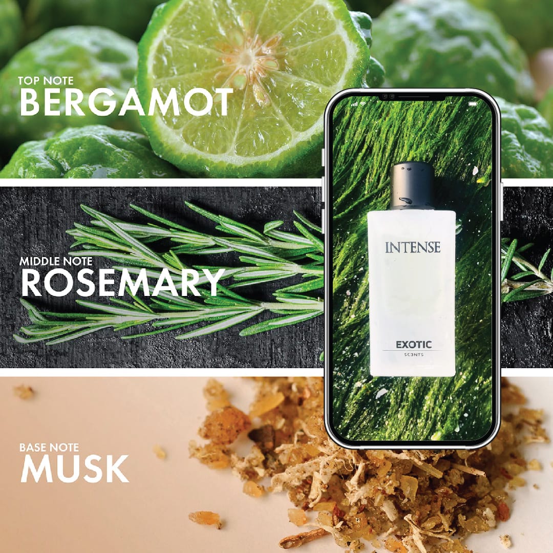 Experience the captivating beauty of nature with INTENSE, a fragrance that evokes the refreshing spirit of the Mediterranean. Perfect for those who seek the best long-lasting perfume combining the freshness of the sea, the warmth of the sun, and the richness of the earth.